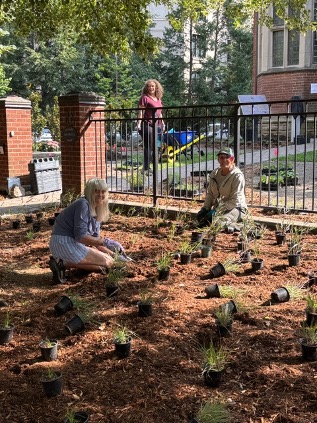 Together, we planted a beautiful native garden that will welcome visitors, support pollinators, and add a touch of nature’s magic to our community space. As all gardeners know, a lot of planning is required to create a warm and inviting space.